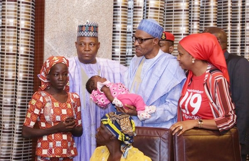 One of the missing Chibok Girls recently rescued arrived Aso Rock earlier on Thursday and has finally met with President Muhammadu Buhari in Aso Rock under tight security.