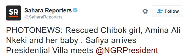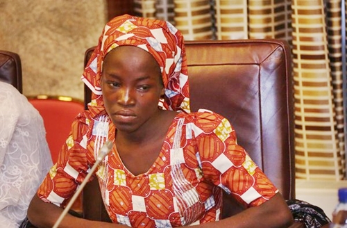 reported it here earlier today that the Chibok schoolgirl named Amina Ali Nkeki, who was rescued around Sambisa forest on Wednesday, departed Maiduguri aboard a presidential jet to Abuja to meet with President Muhammadu Buhari.