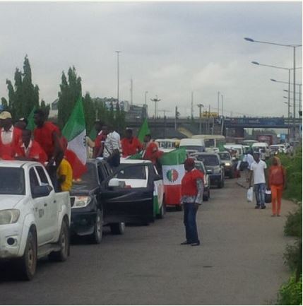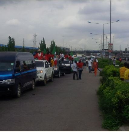 .The momentum of the NLC strike in Lagos State has been sustained for the second day with the high flying flags of the union gallantly taking over roads in the commercial capital of Nigeria.