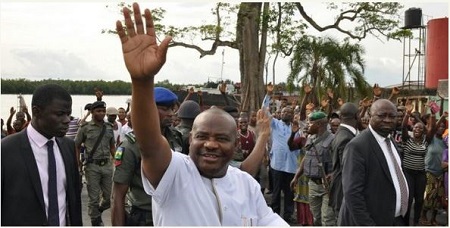.People's Democratic Party Governor, Nyesom Wike was heavily saluted by his people as he walked through the streets of Rivers State to inspect governmental projects.