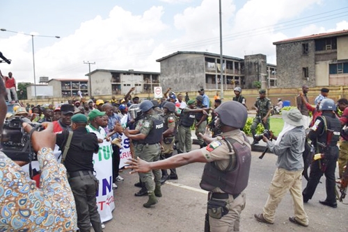 .As the Nigerian Labour Congress kicked off its nationwide strike in protest of the increase in fuel price, some Labour protesters reported clashed with policemen who reportedly tried to stop their movement.