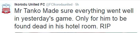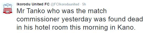 Kano Pillars and Ikorodu United was found dead in his hotel room this morning.